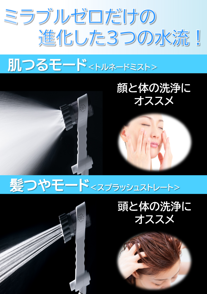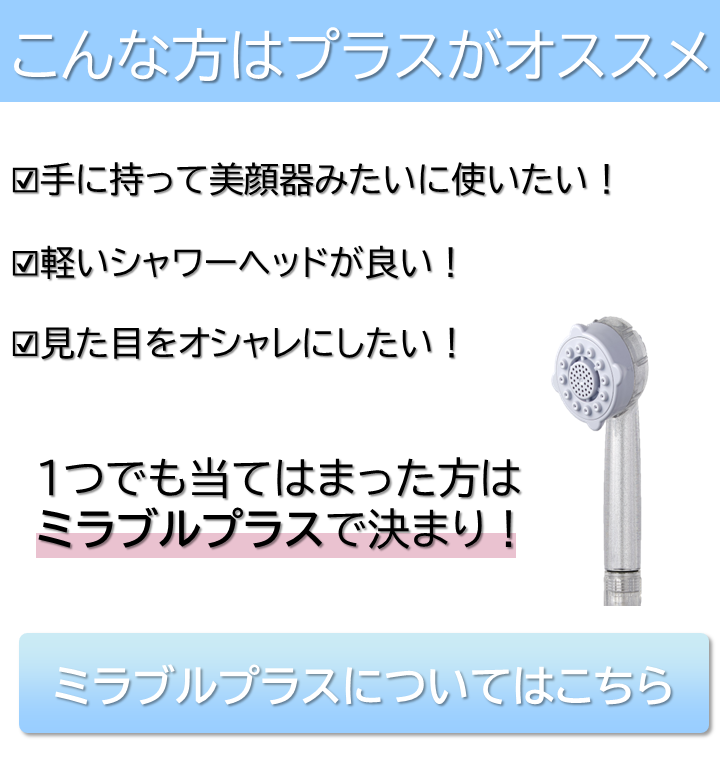 ミラブルplusはバブルと水の刺激で、浴びた後、ポカポカと温かく感じます。小さなお子様がいらっしゃるご家庭はもちろん、一人暮らしの社会人にも特におすすめです! ※ストレート水流のみ。