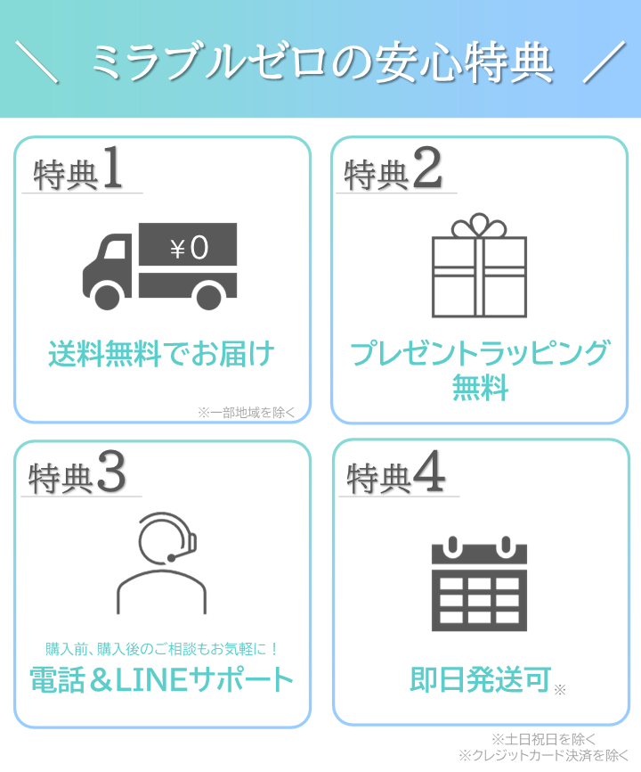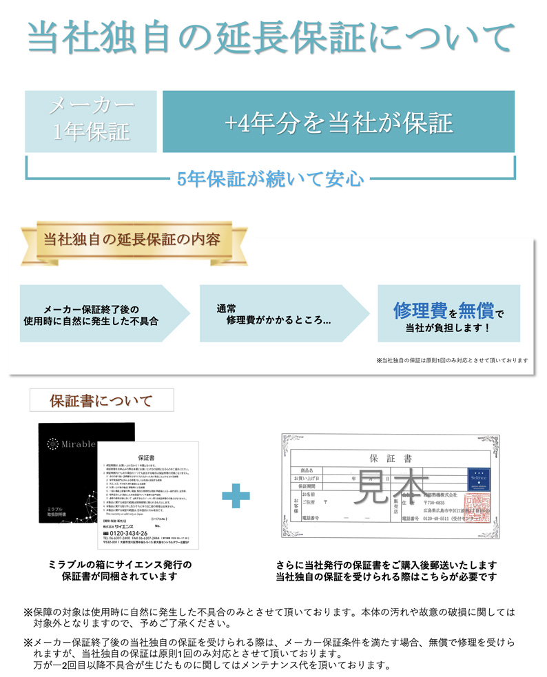 (ただしメーカー保証条件を満たす場合に限ります)2.5年間延長保証はミラブル本体のみが対象です。