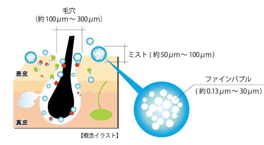 ウルトラファインバブルが毛穴の細かいところまで入り込み、汚れをやさしく洗いながしてくれます。