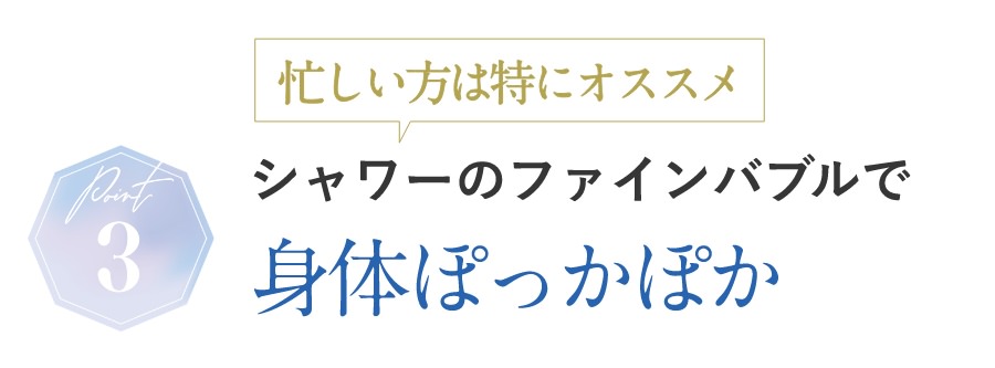 ウルトラファインバブルの洗浄力でこすり洗いによる摩擦ダメージを減らし、全身美肌を目指しましょう。